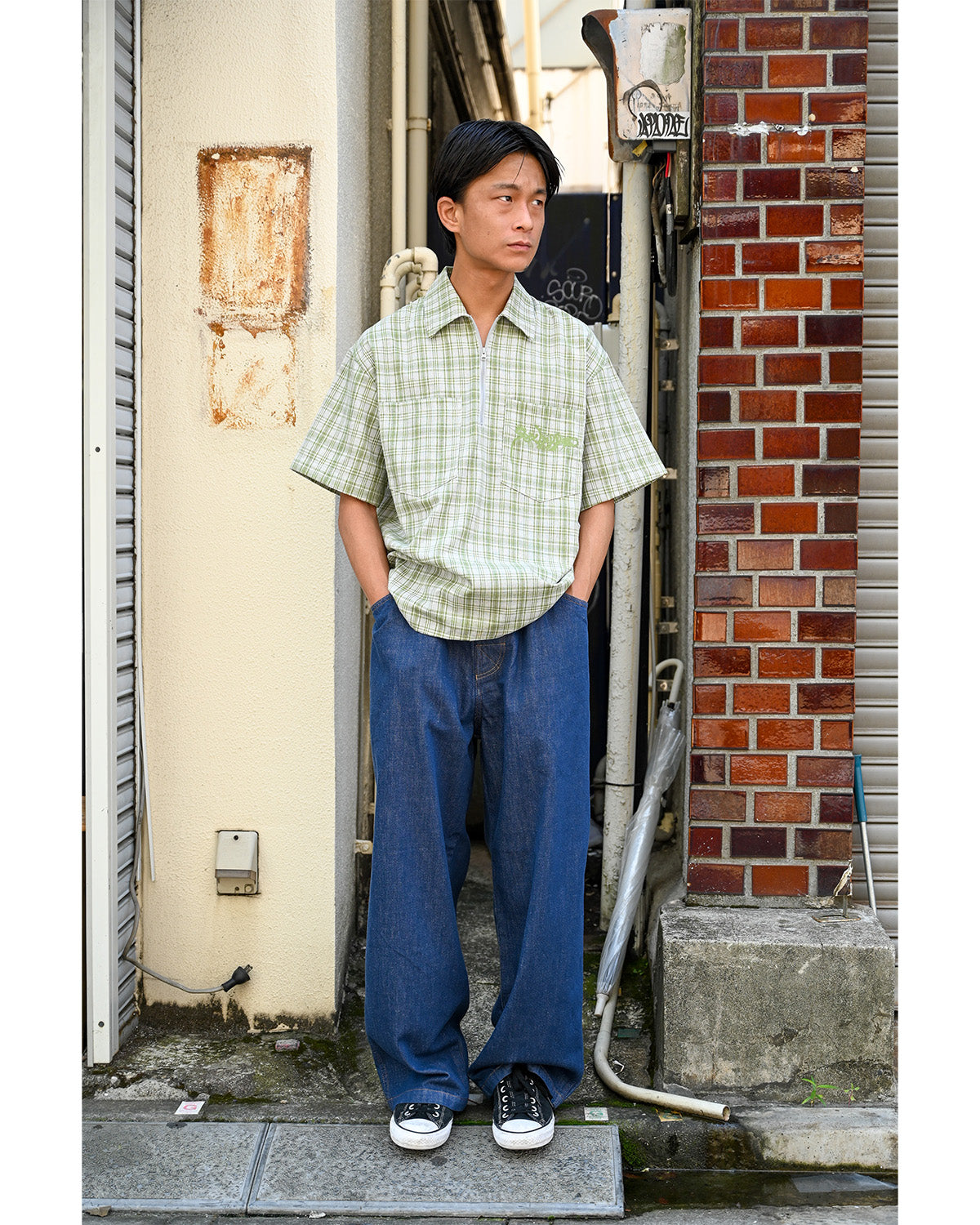 色落ちのしにくい反応染めのデニム生地を使用。洗濯後も今の雰囲気をキープ出来る1着。