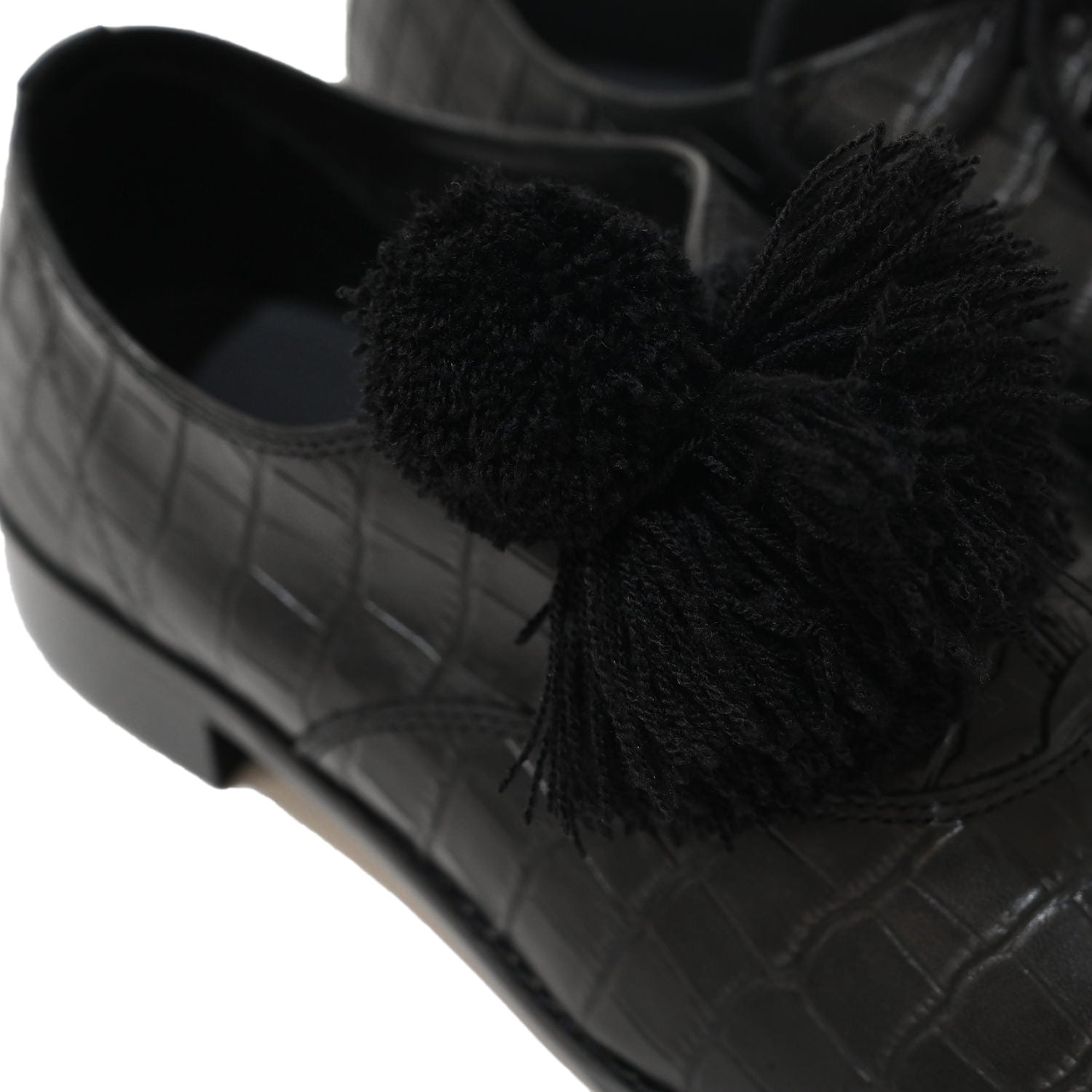 クロコの型押しを施したクラシックなオックスフォードシューズ。踵を踏んでスリッパのように履くことが可能です。着脱可能なフリンジが付属しております。非常に軽量でサンダルやスニーカー感覚で着用できるレザーシューズ。