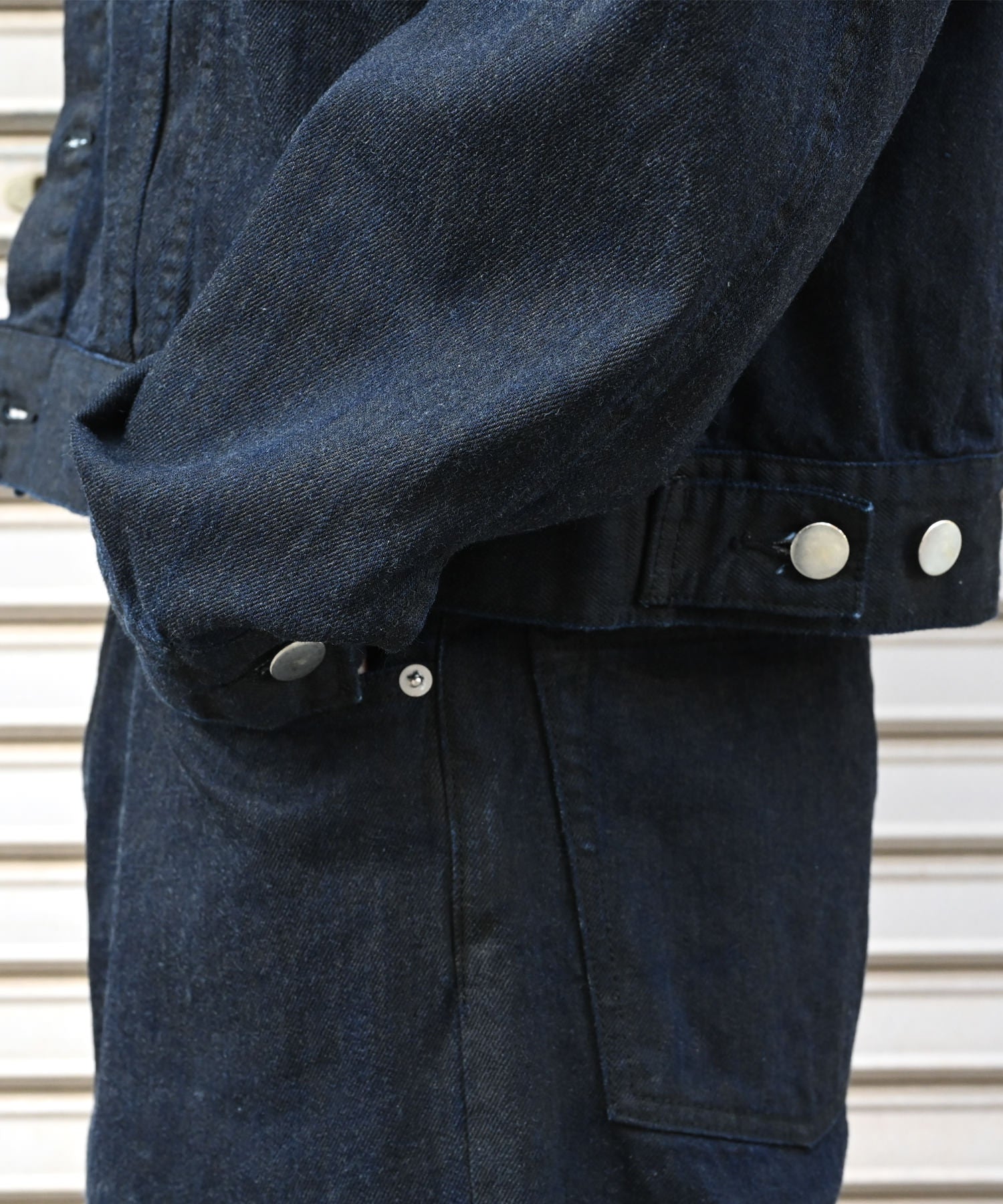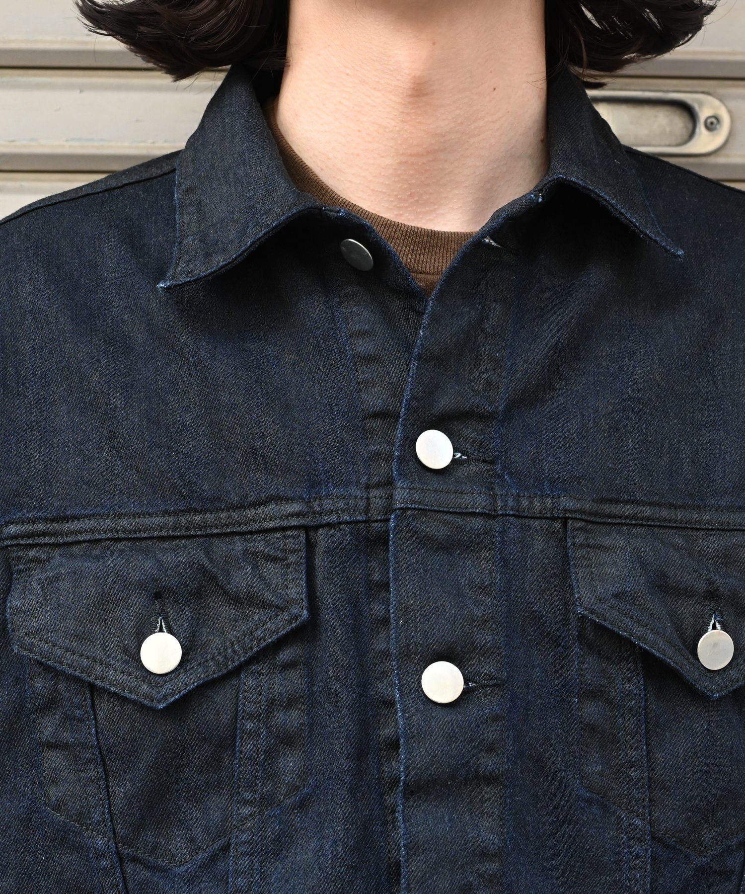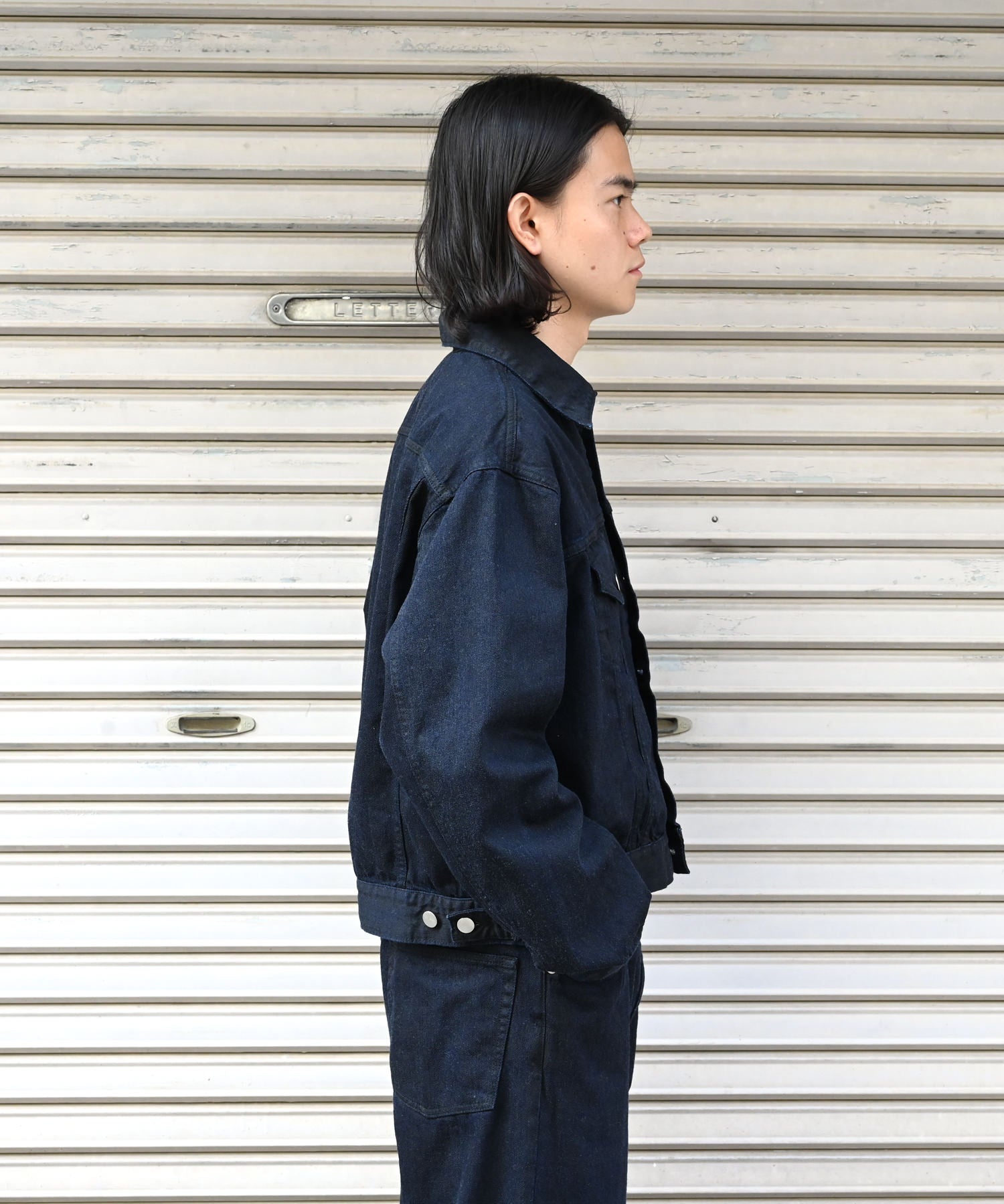コットンデニム素材のトラッカージャケット。表面に顔料プリントを施し、独自の雰囲気に仕上げたアイテム。URUらしい上品さはキープしつつ、着込むほどに馴染みます。着丈は短めのGジャンらしいシルエット。インでもアウトでもどうぞ。