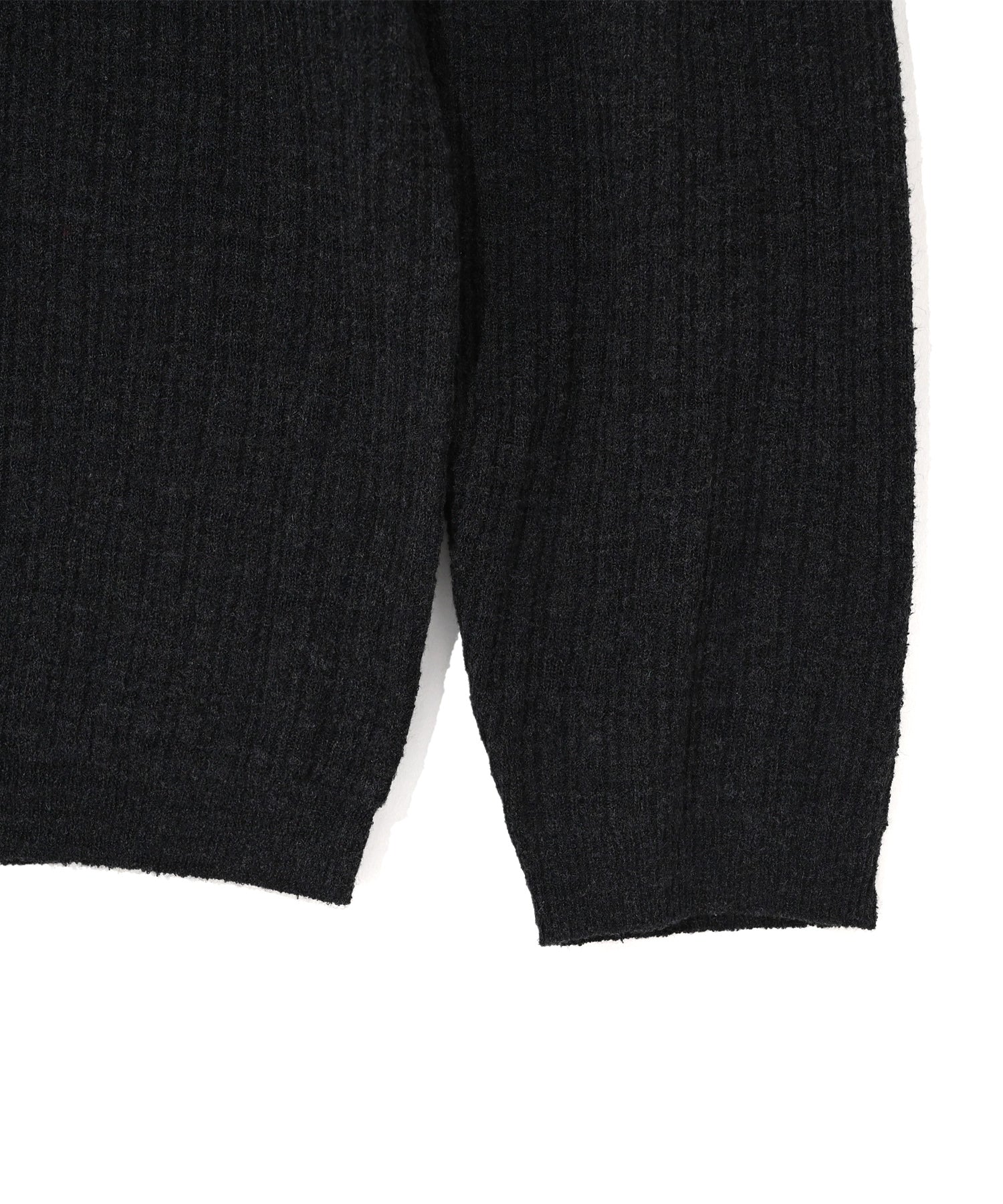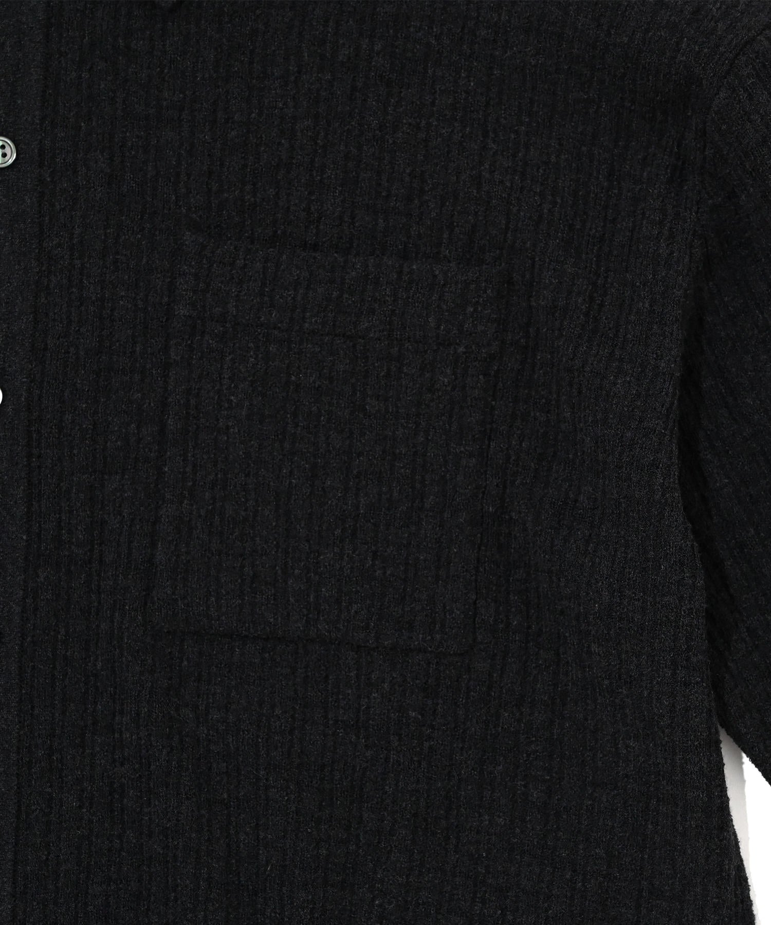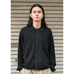 表面に凹凸感(シボ)のあるシャツニット。適度な肉感とサラッとした肌触り。タンクトップの上などに着るのがおすすめです。スッキリとした着丈でボックスシルエットも特徴的。