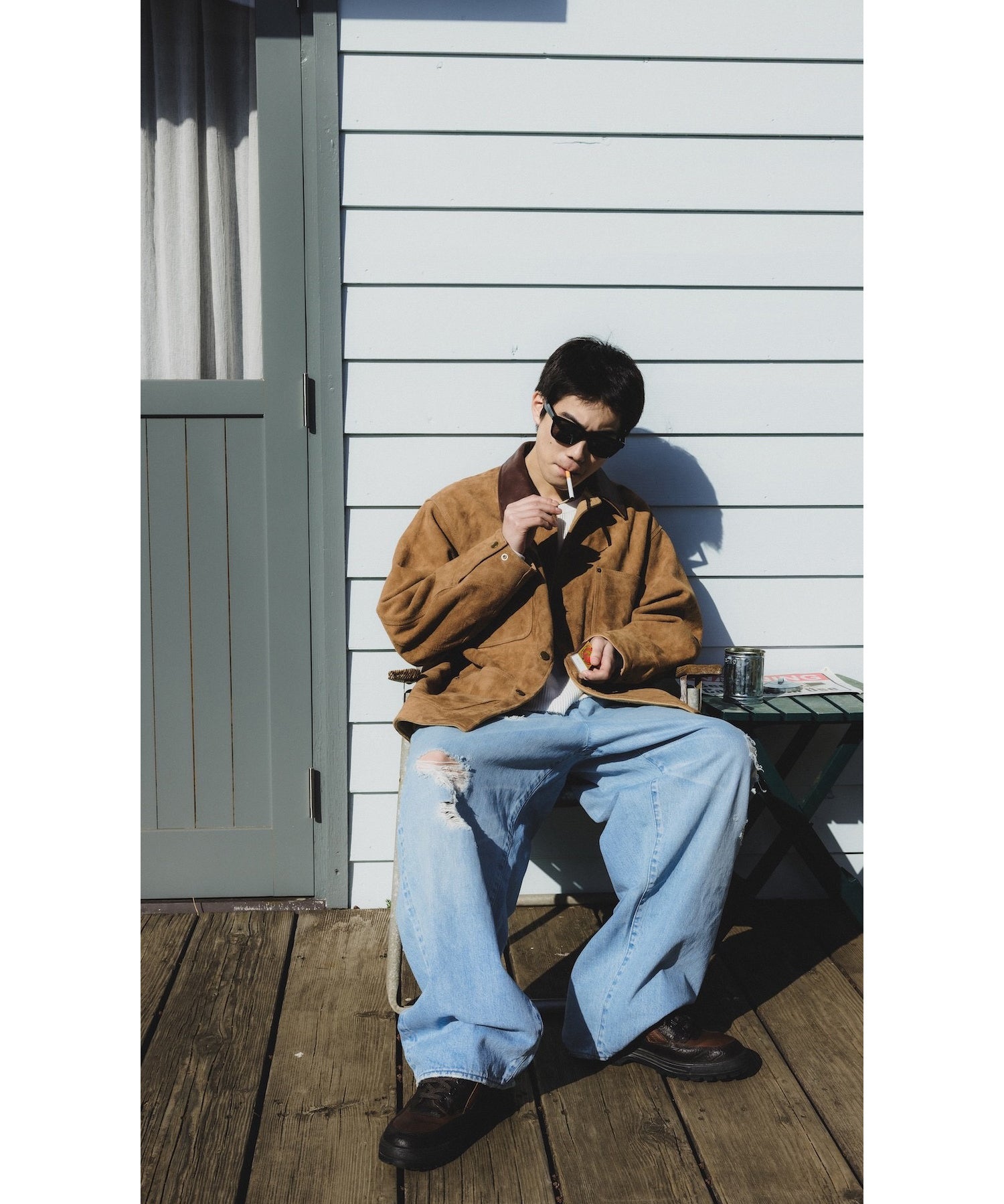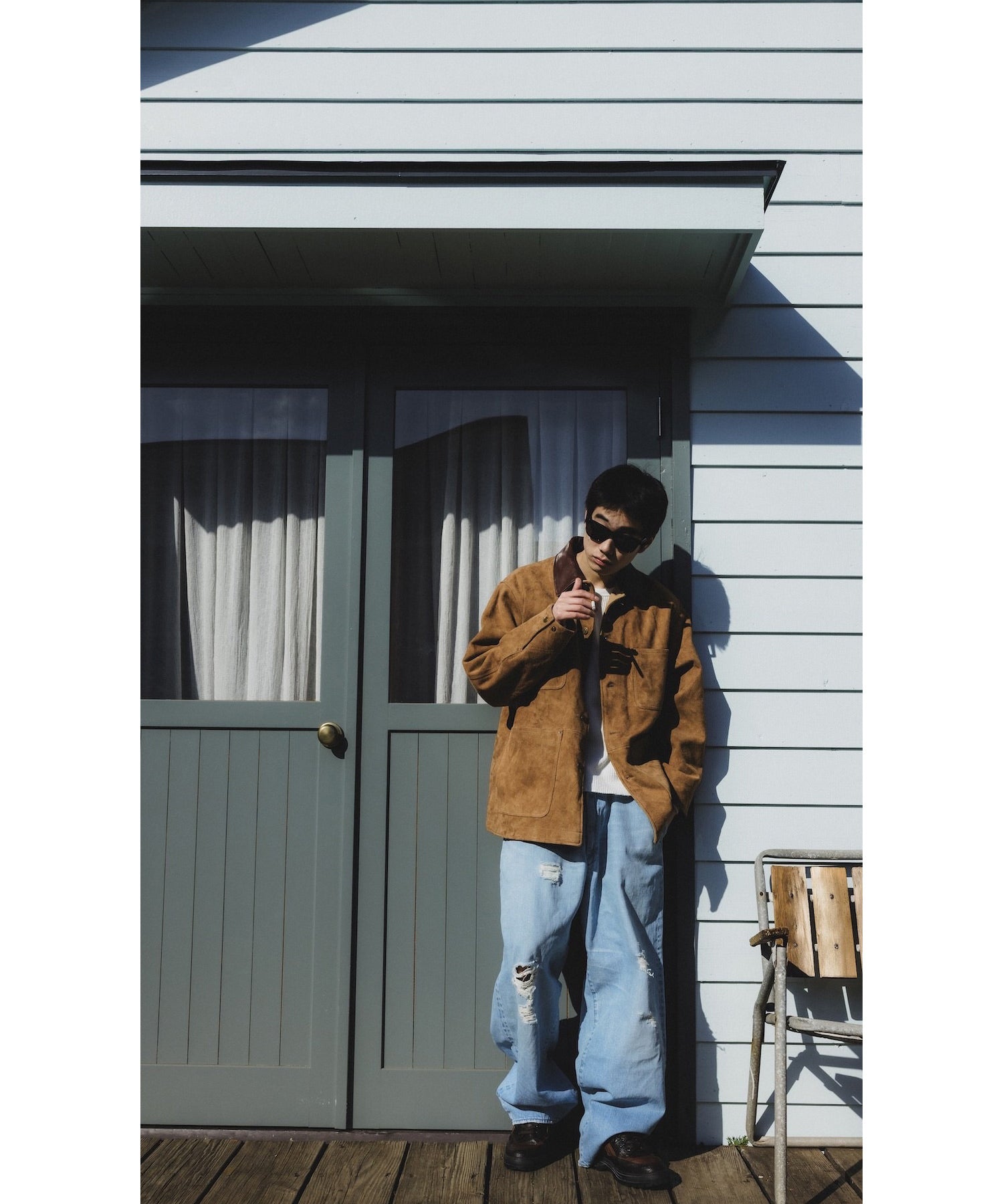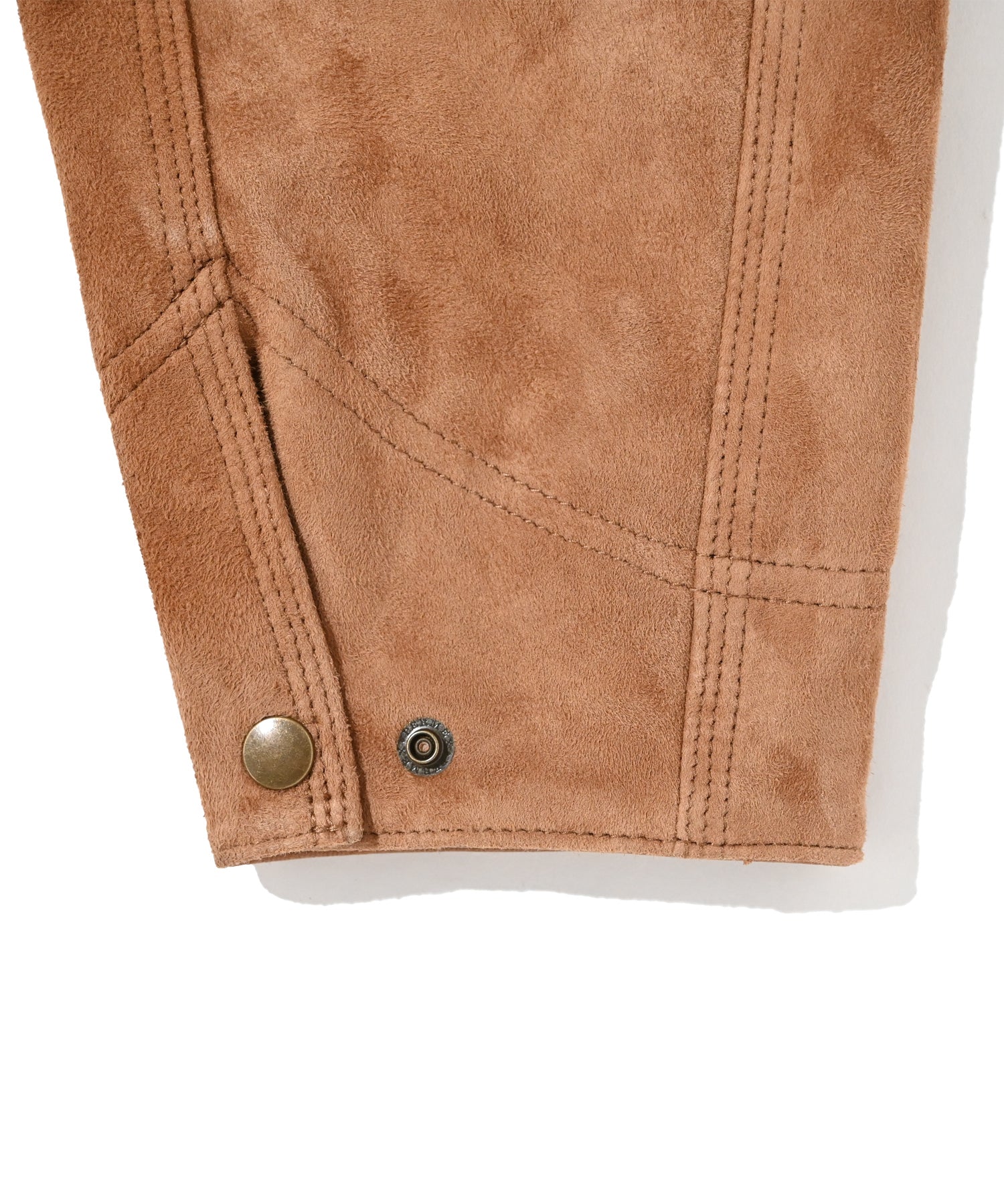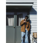 カワーオール。チョアコート型カバーオール。今回も運転時に脱がずに着れる革ジャンをコンセプトに軽さと柔らかさにとことん拘ったゴートの銀面付きスエードを使用。適度な厚みの銀面層により堅牢性を保ちつつ、表面は自然な粗さのある毛羽感に仕上げ、着用とともにしなやかなエイジングが生まれるバランスに調整しました。