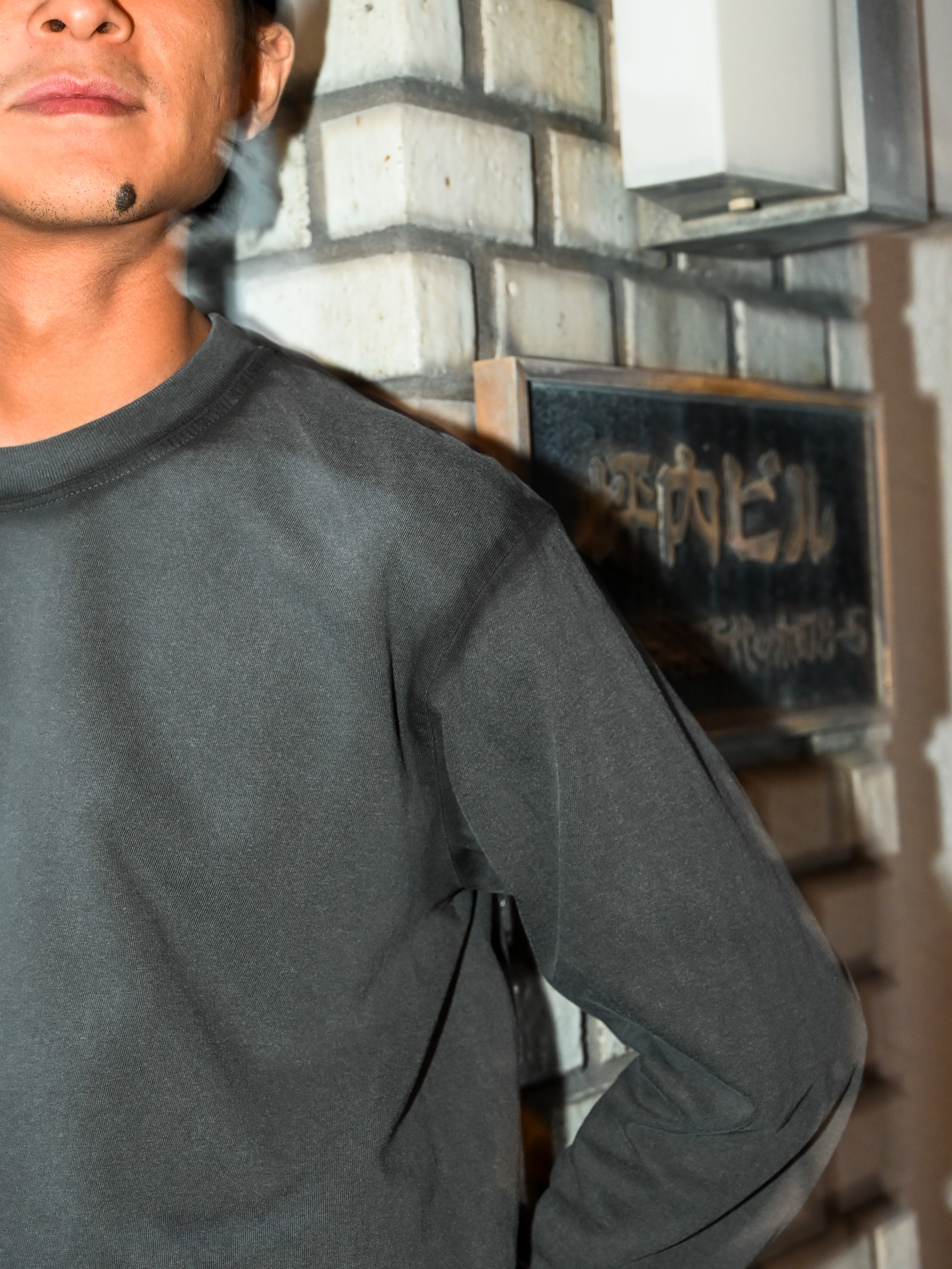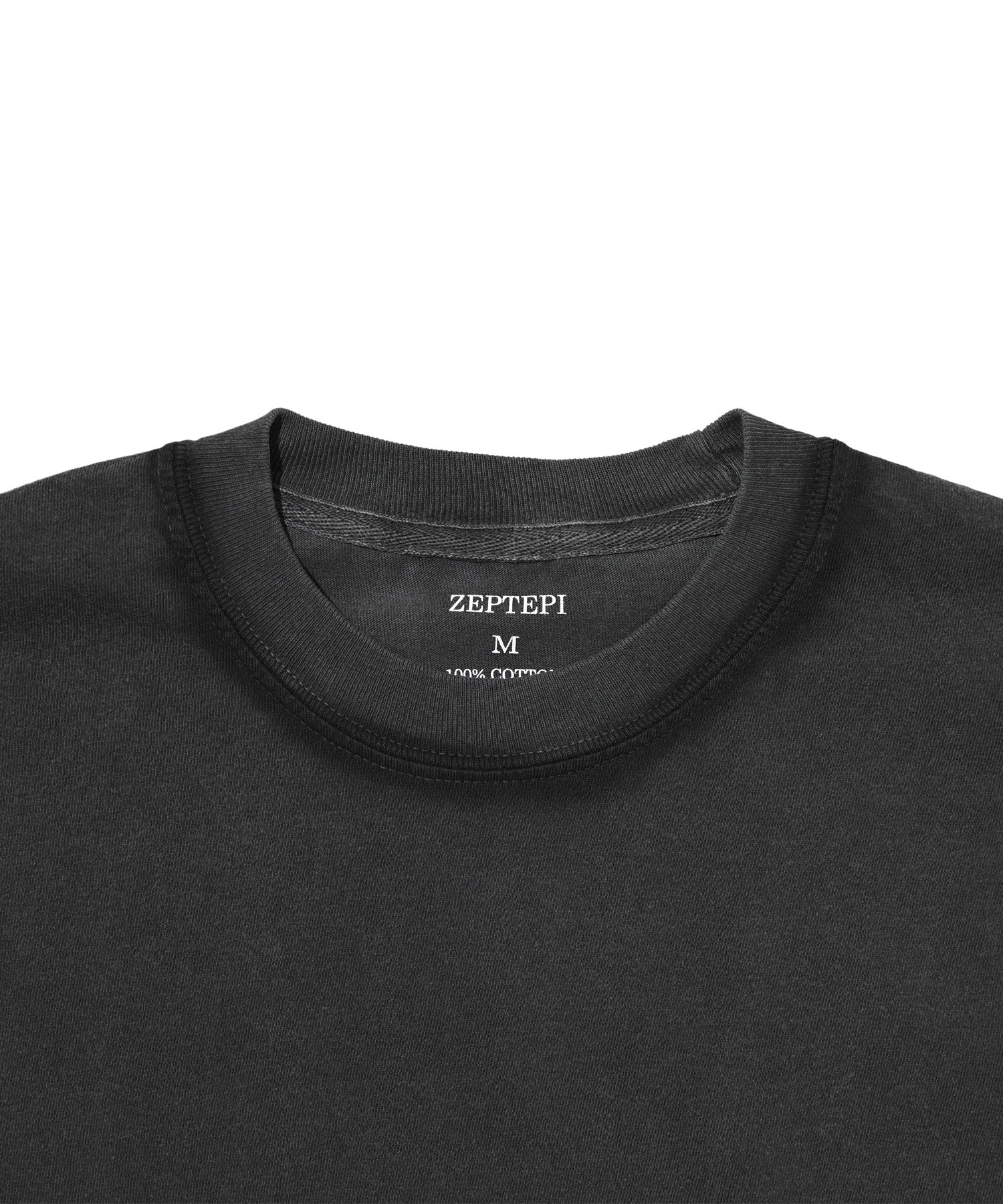 ZeptepiとTHE UNIONのダブルネームアイテム。COMFORT COLORS社製のピグメント染めボディーを使用し、縫い目をエアーブラシにて1点1点染色を施しています。フェード感のあるブラックボディにエアブラシのラインがアクセントに。