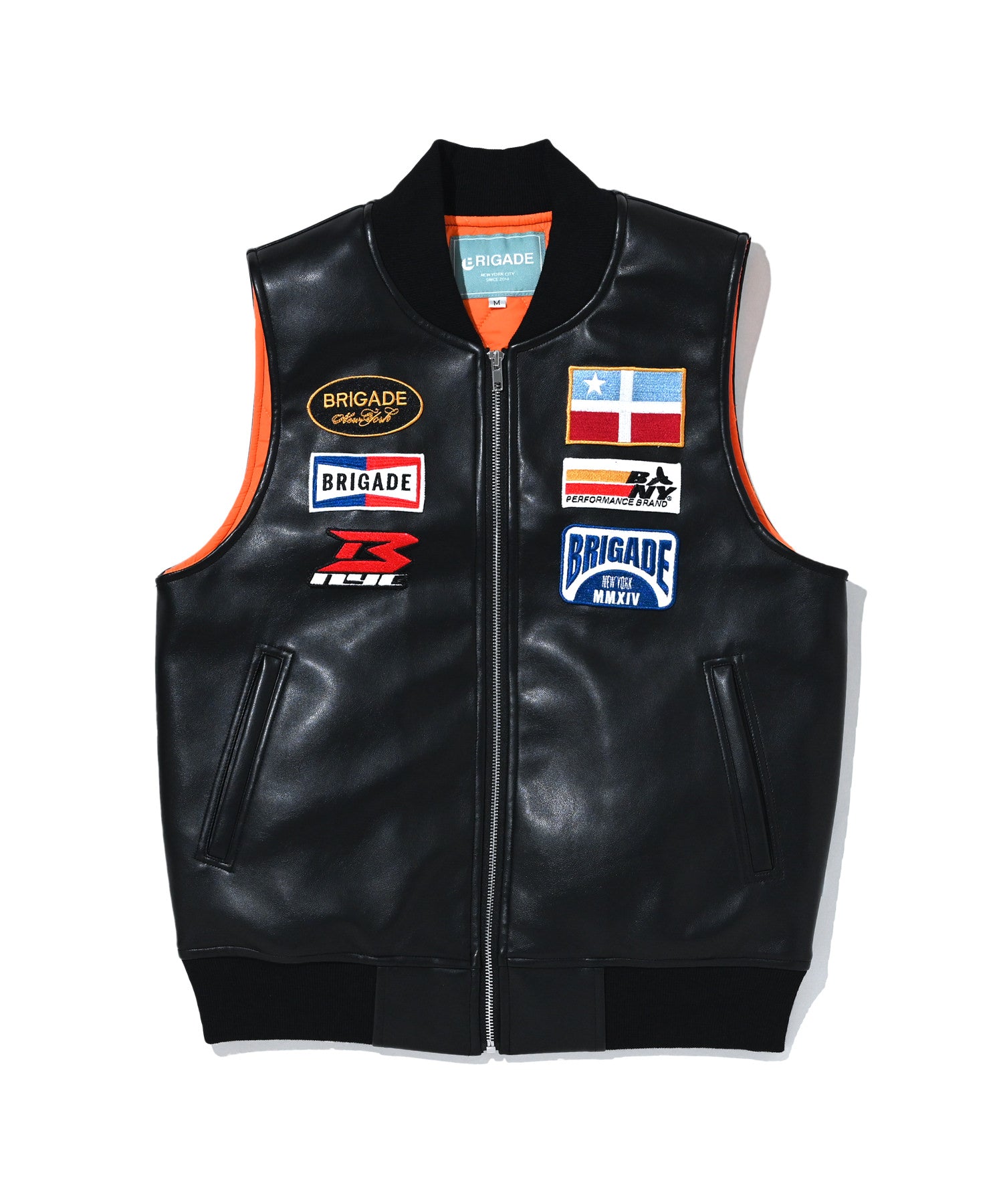 ヴィーガンレザー使用し、フロント、バックにパッチが施されたベスト。裏地にはキルティングを採用し、着丈はスッキリとしたリラックスフィットとなっています。