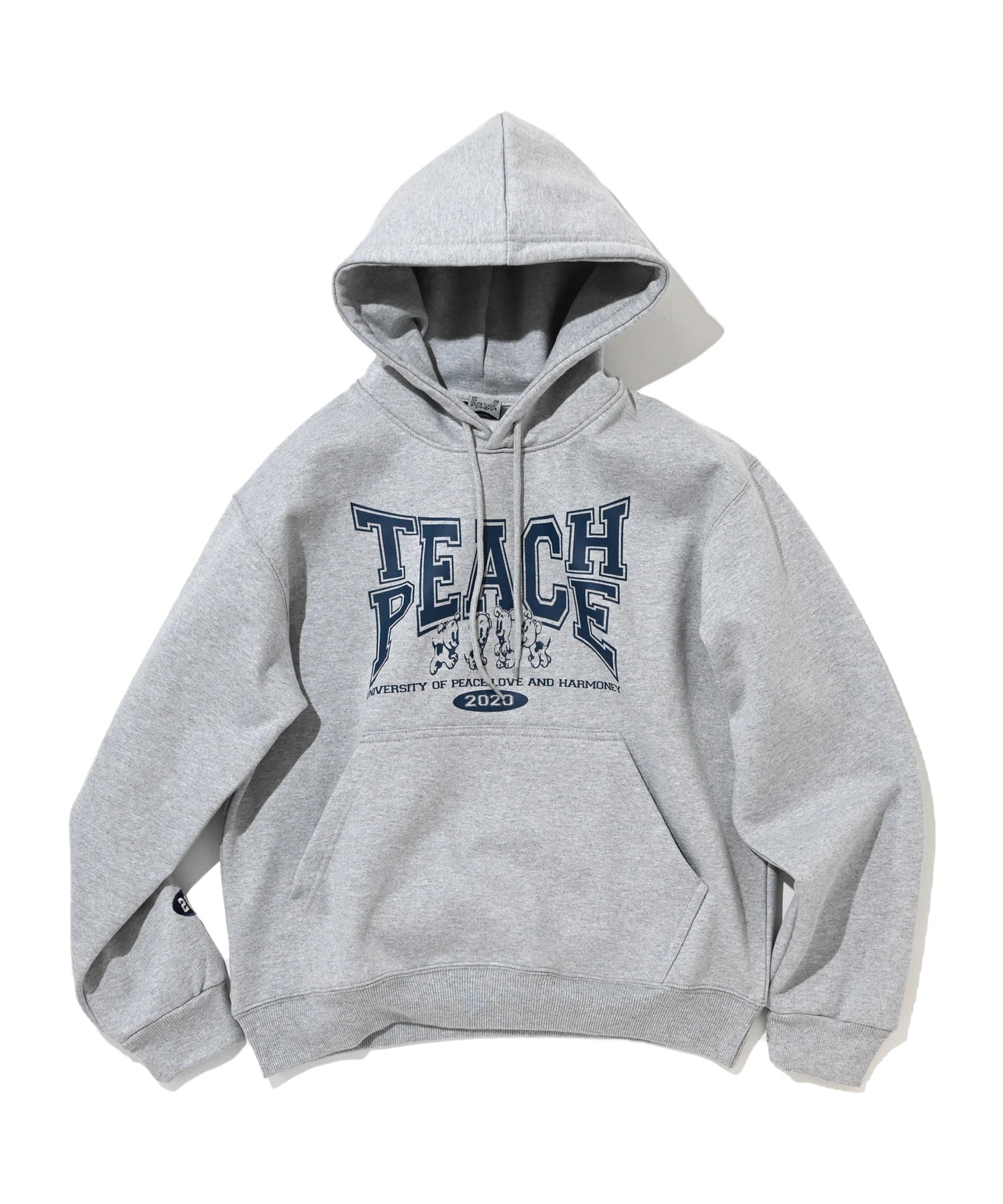 SlinkyよりカレッジフーディーをオマージュしたTEACH PEACE HOODIE。袖には2020の刺繍が施されており、シンプルなデザインの中にSlinkyらしさを所々感じるアイテムになっています。