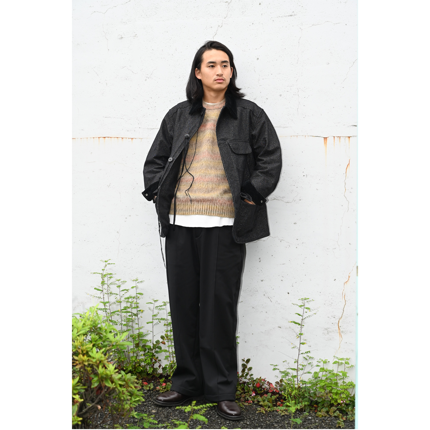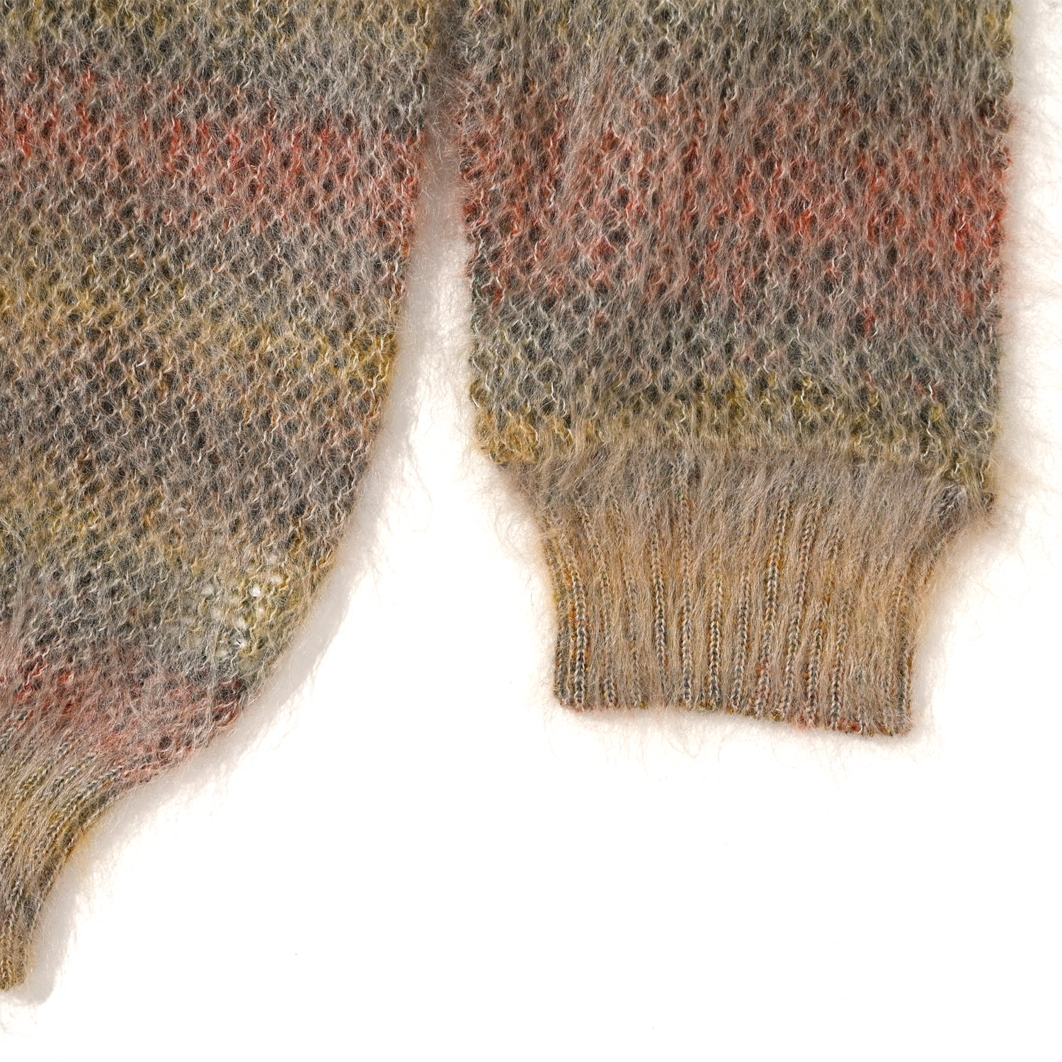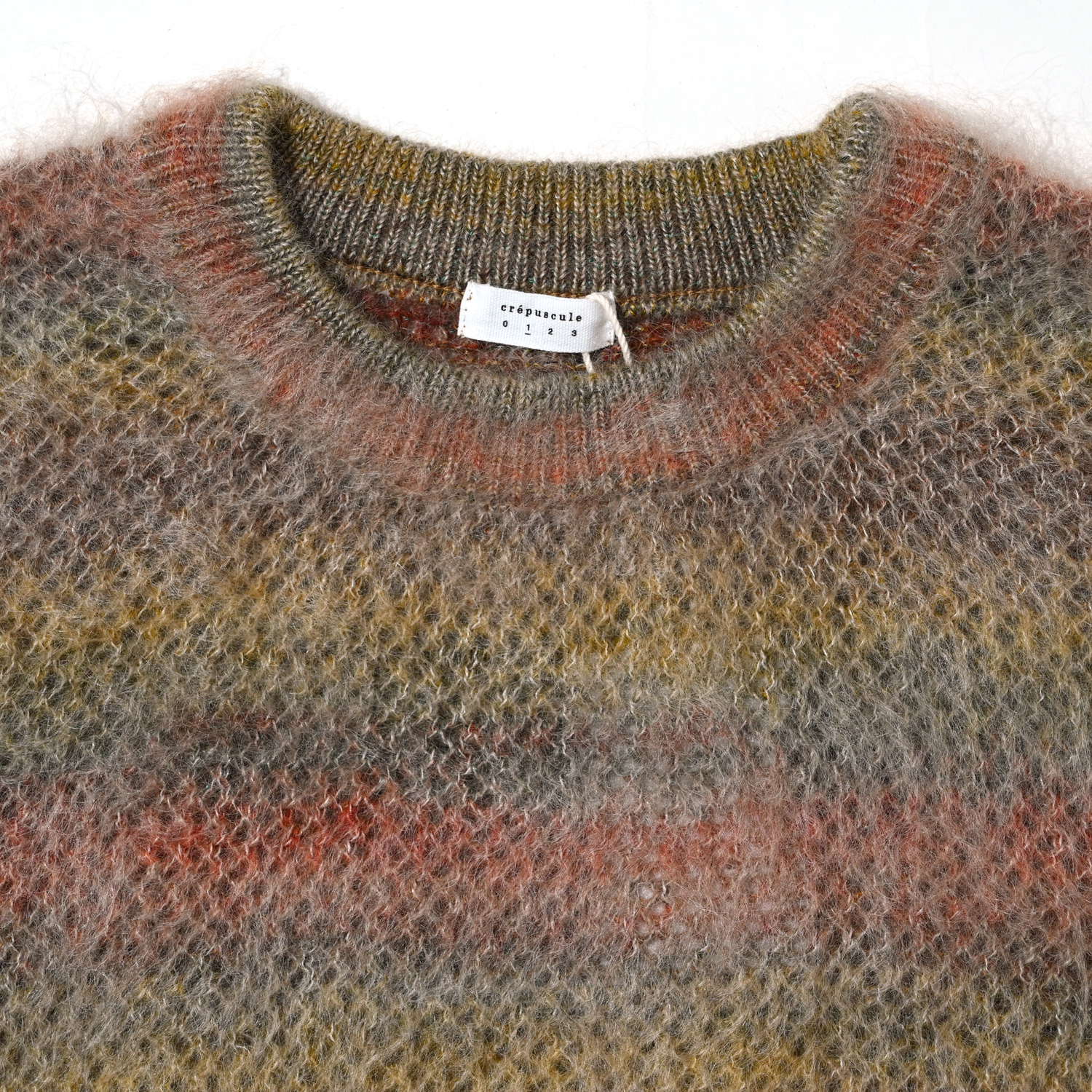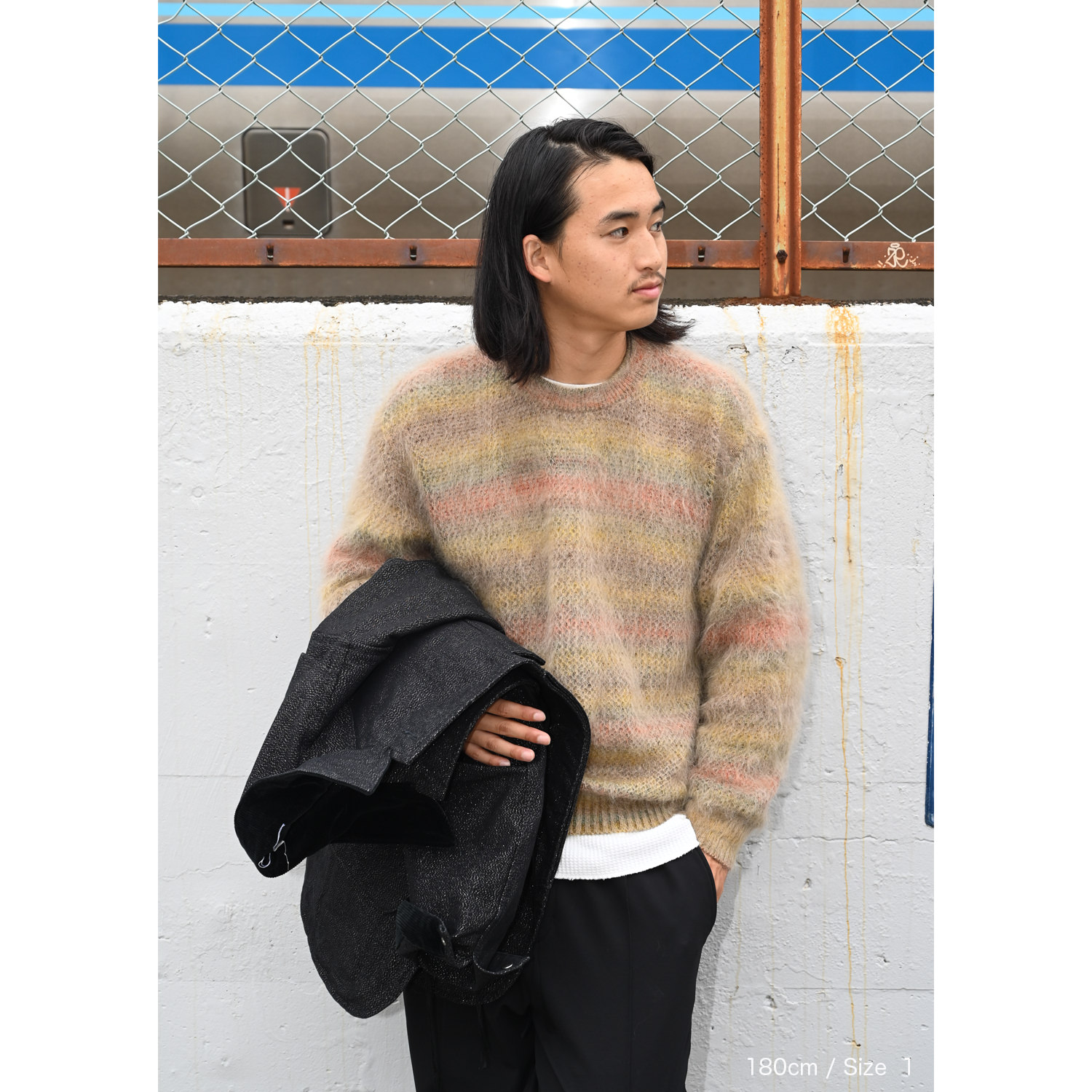 モヘアニットのグラデーションボーダー。大人の余裕を感じる気品のあるリラックスしたシルエット。また軽量で使い勝手のいい1枚。