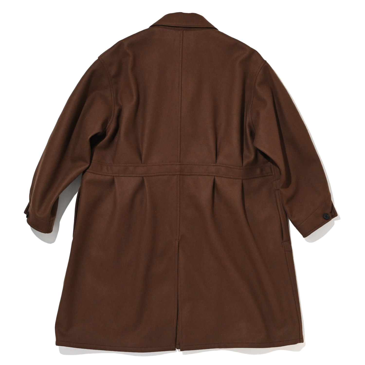 gourmet jeansとウールのコートを作りました。ウールの一枚仕立て。フロントには大ぶりな4つのパッチポケットでワークテイストながら上質なメルトン地を使用し、品のある雰囲気に。軽量で着やすく、後ろにはタックが入り立体的なスタイルになります。しっかり身幅があり、ゆとりのあるフィットですので、上から羽織るだけで様になりる1枚。